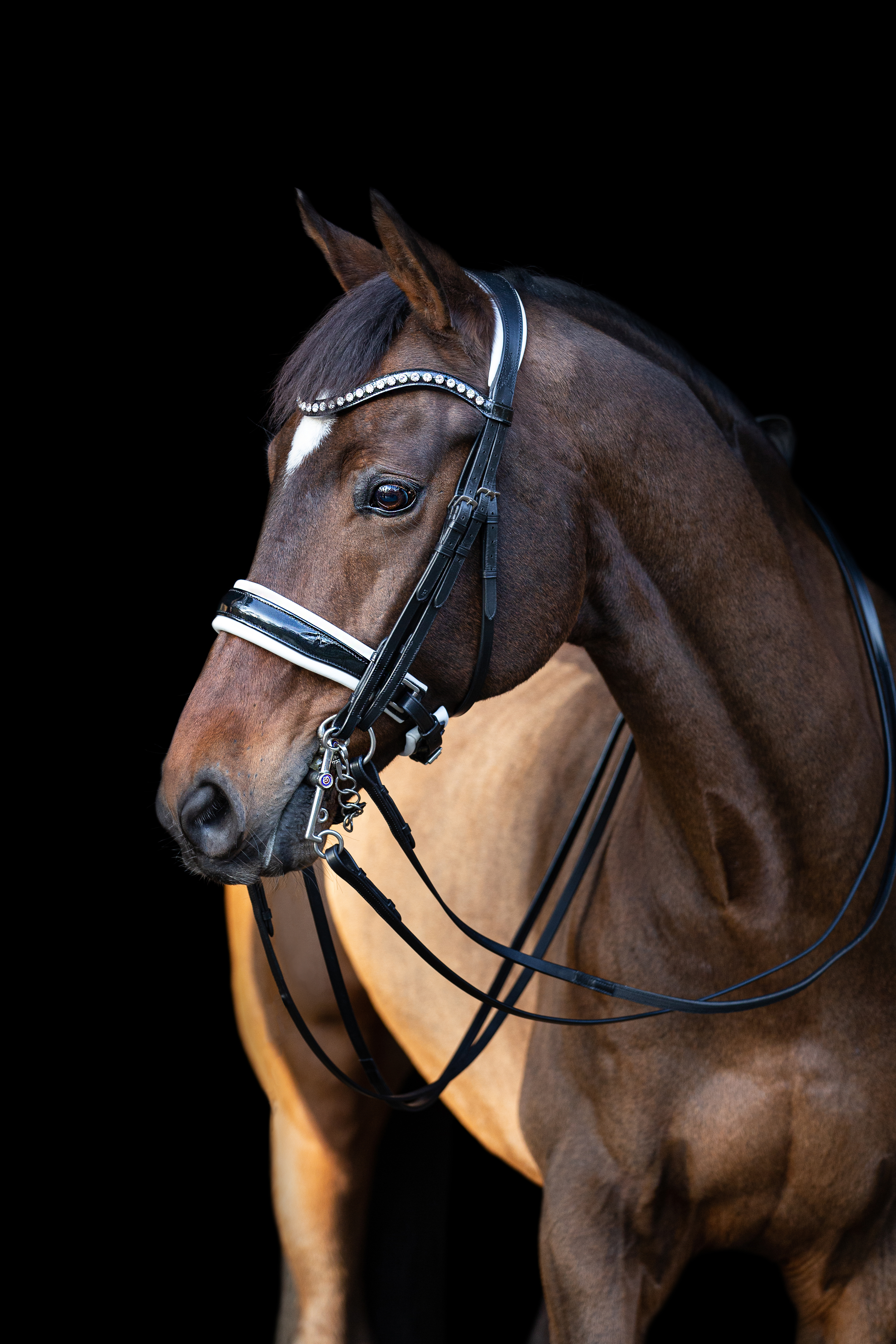 Do you choose a Custom TESS bridle? You’ll receive your bridle with the TESS Swarovski Browband, allowing you to choose your preferred stone color. We will then make the browband custom for you*. With this browband, you have a two-year warranty on losing stones.