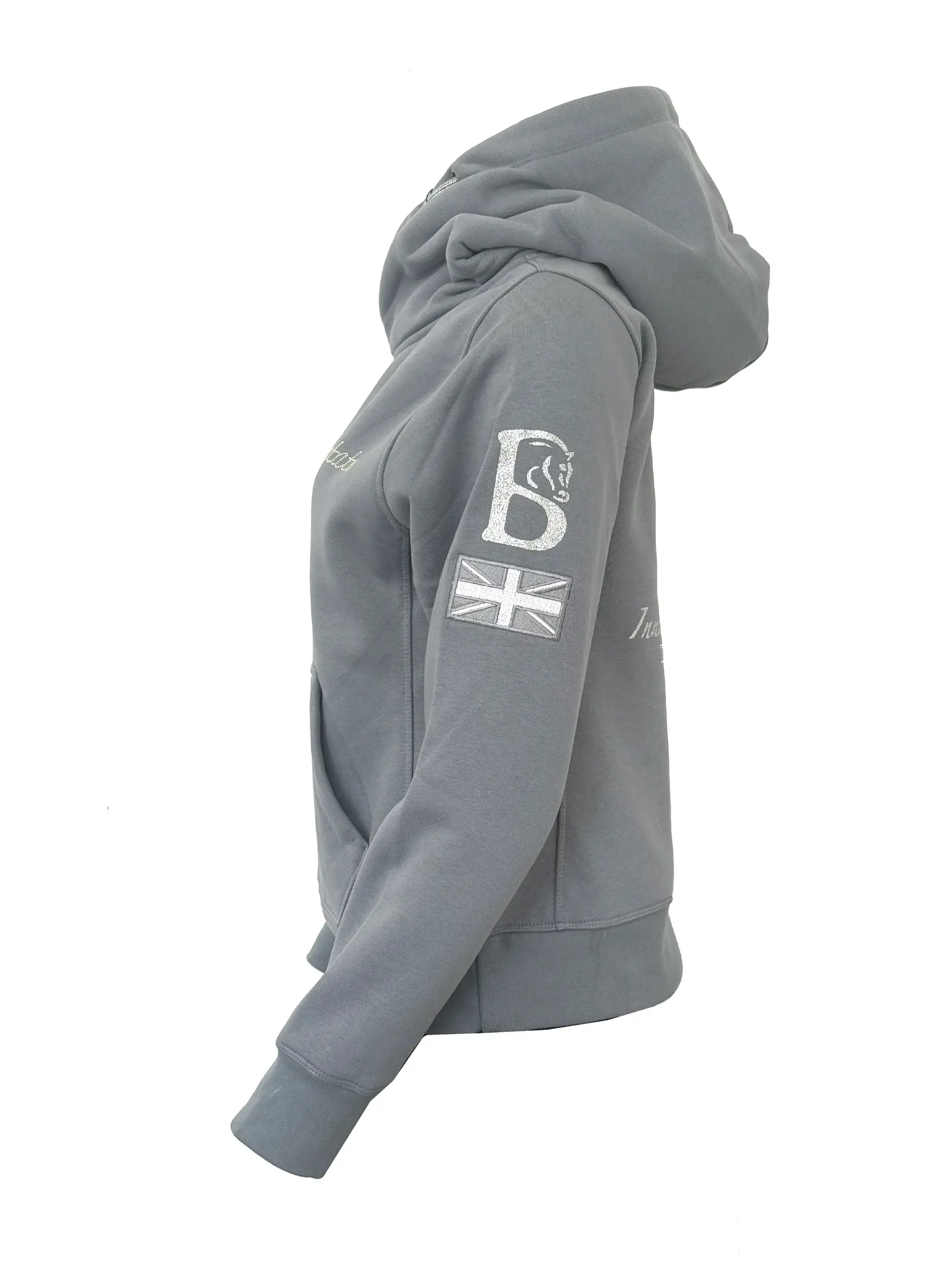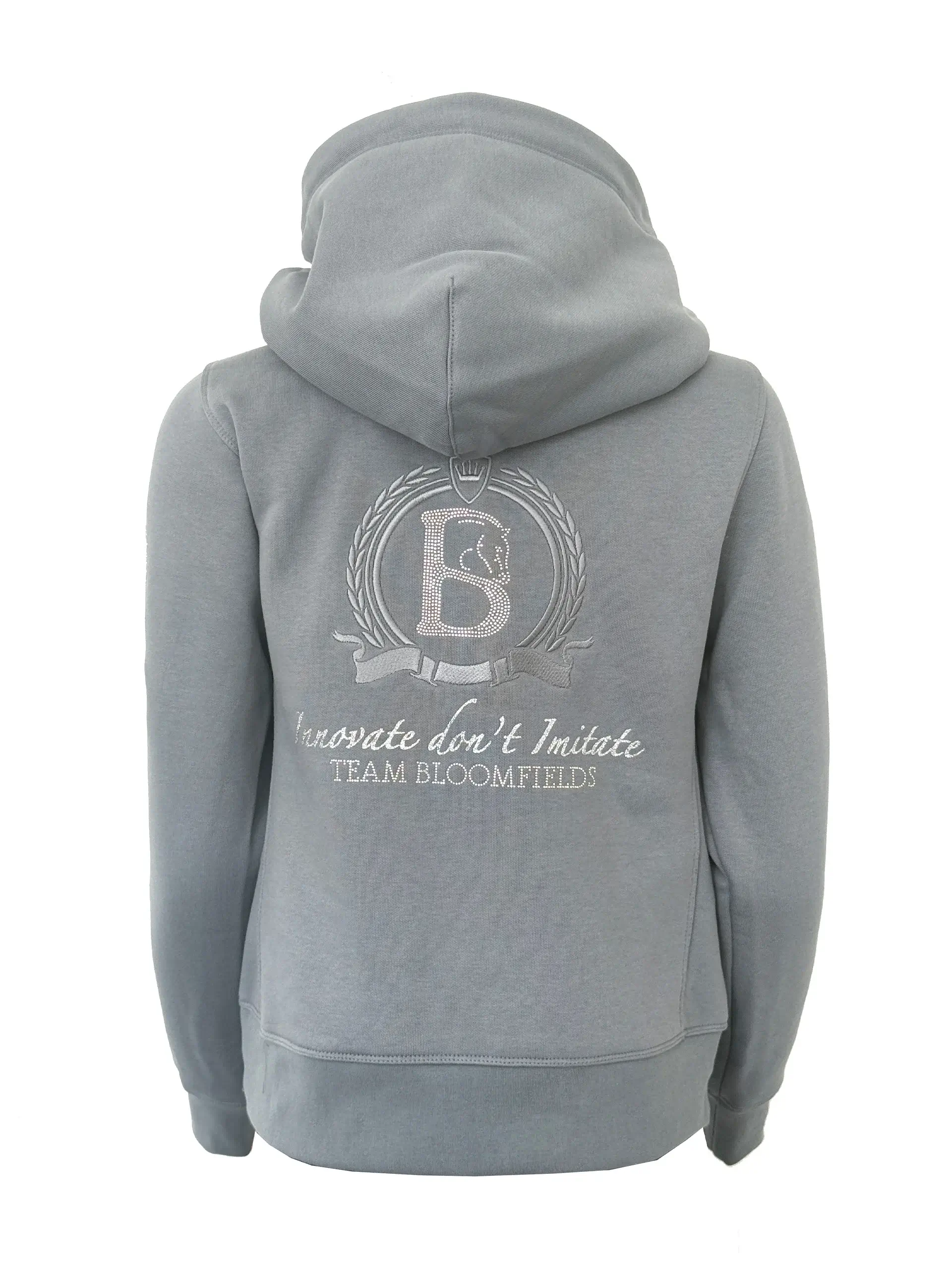 Wat deze hoodie extra bijzonder maakt? Het merk-DNA van Team Bloomfields komt op meerdere plekken subtiel terug: geborduurde letters op de mouw, het iconische Bloomfields ‘B’-logo op de andere arm, een Union Jack accent en de “Innovate don’t Imitate” borstbranding. Op de achterkant staat het Team Bloomfields-logo afgewerkt met strass steentjes.