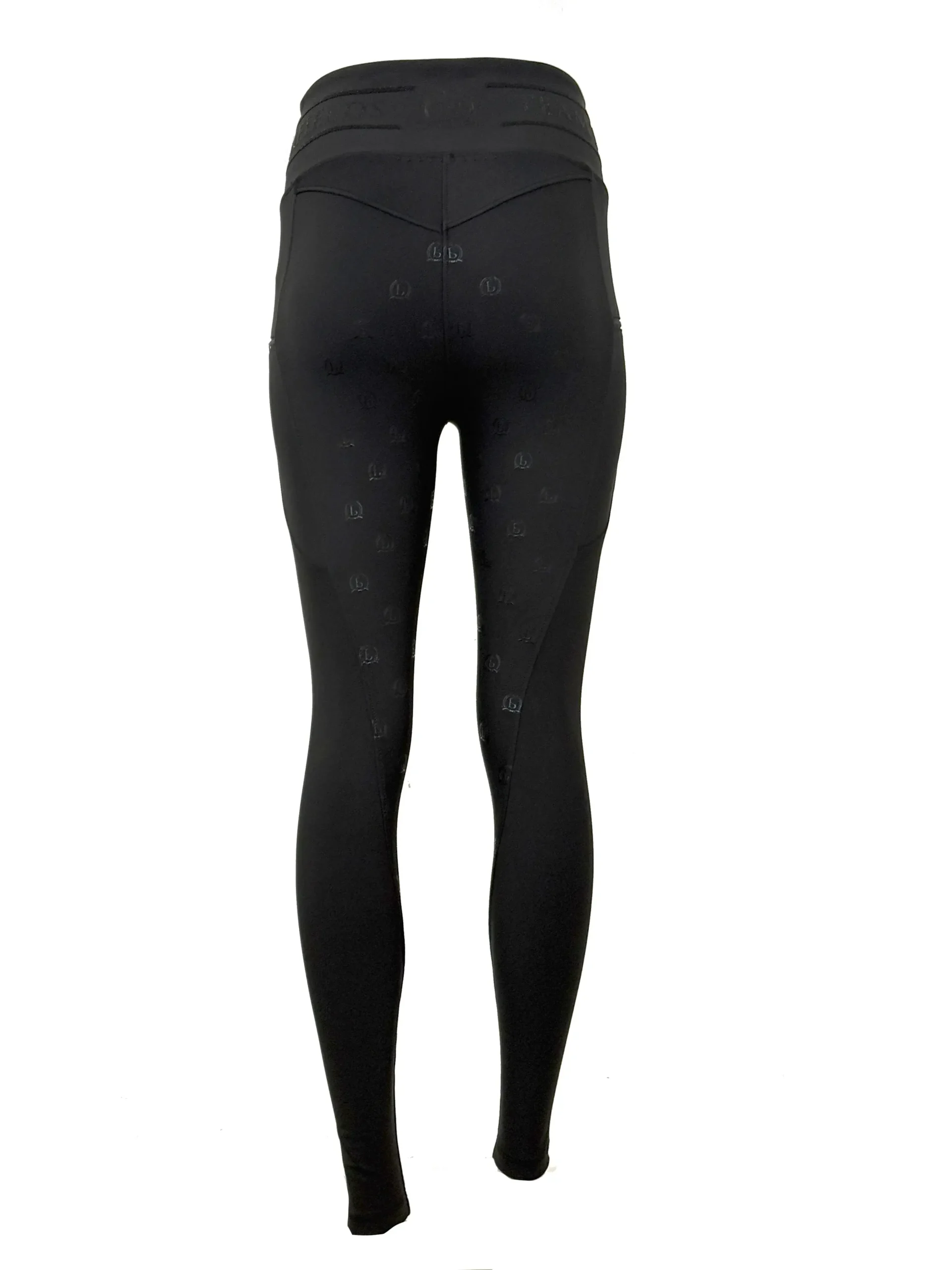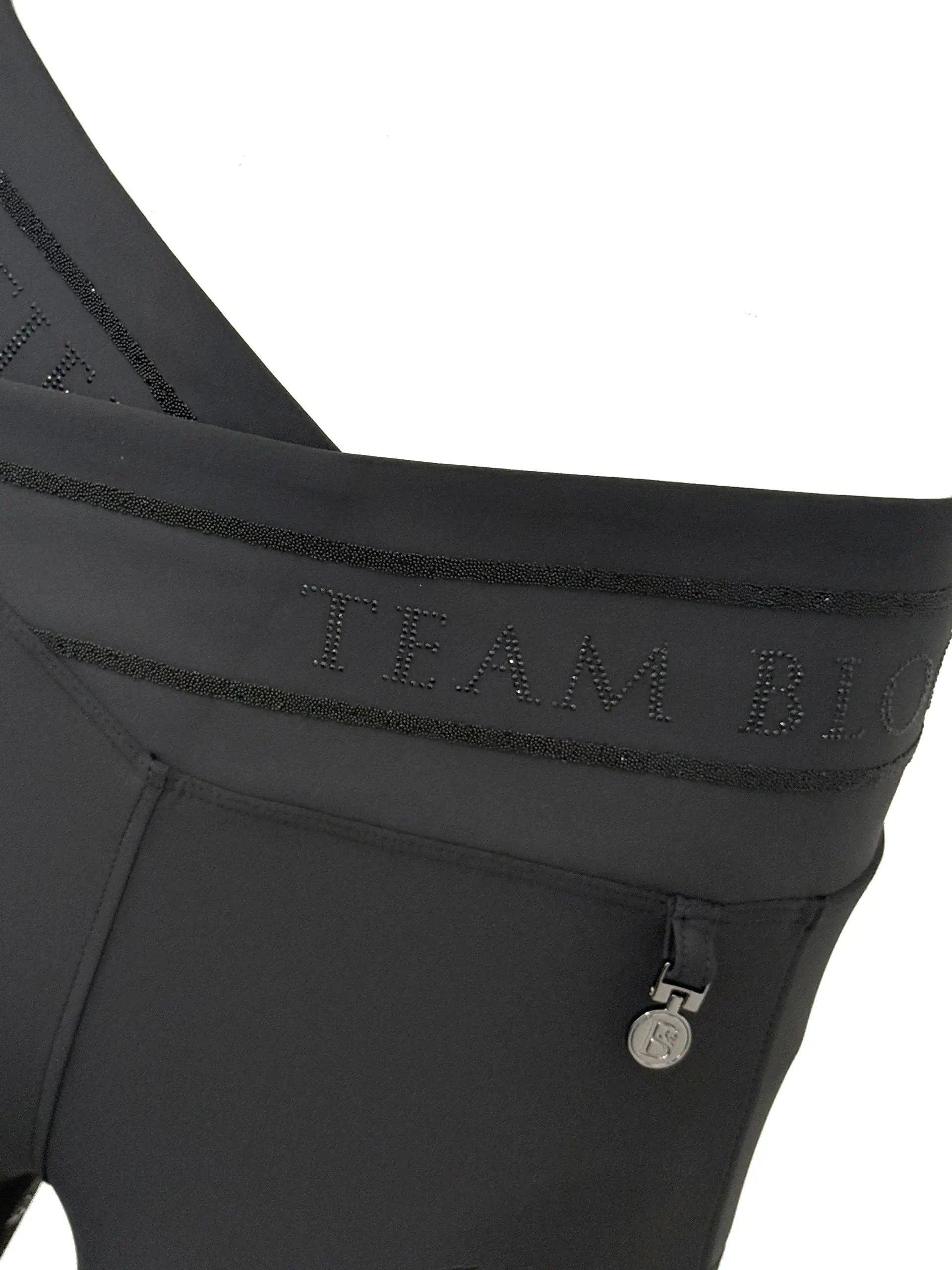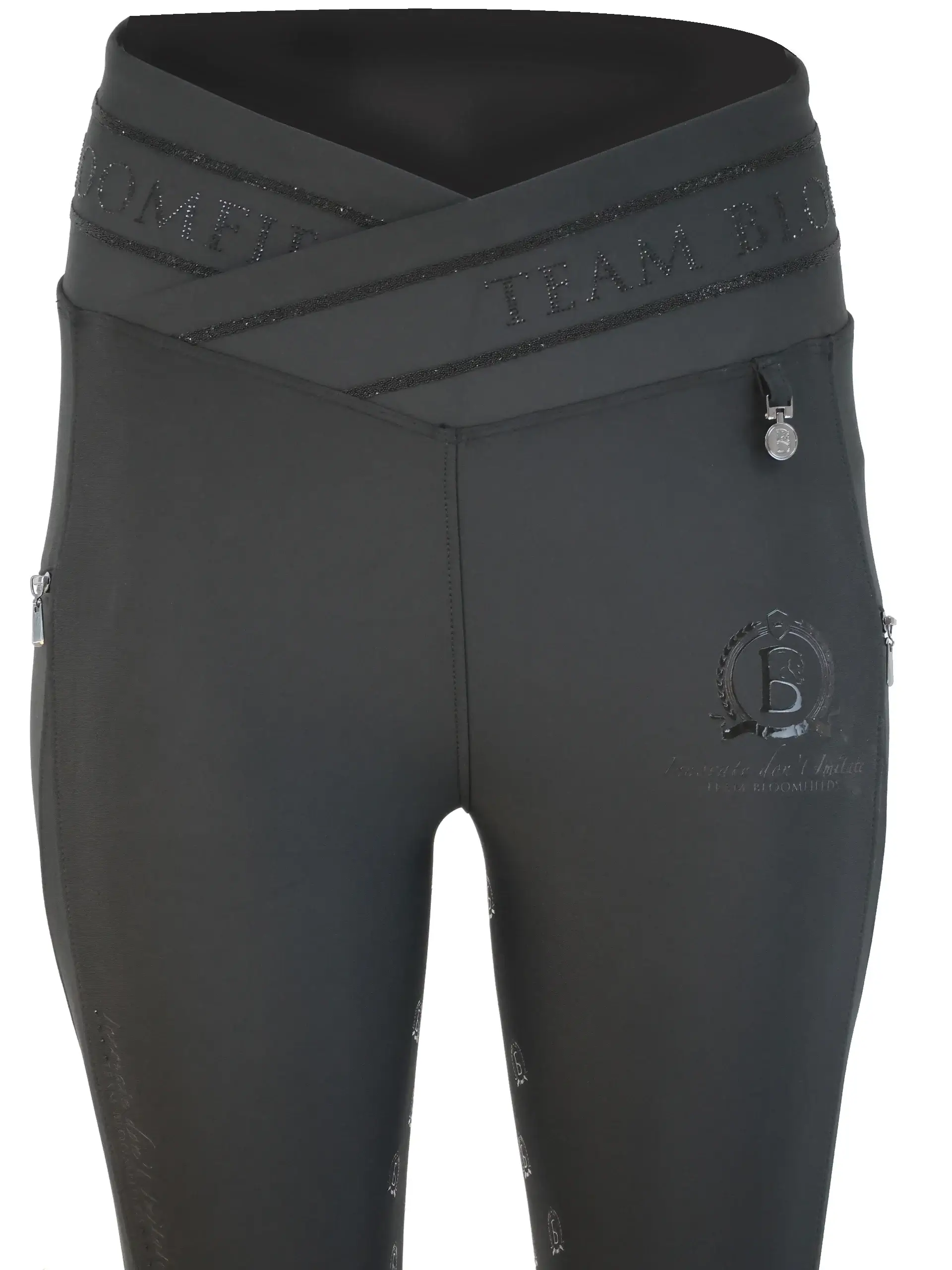 De Celeste Black Crystal Legging van Team Bloomfields bewijst dat rijleggings niet alleen praktisch hoeven te zijn. Dit model combineert comfort en functionaliteit met een subtiele, luxe uitstraling en is daarmee een echte blikvanger in het zadel.