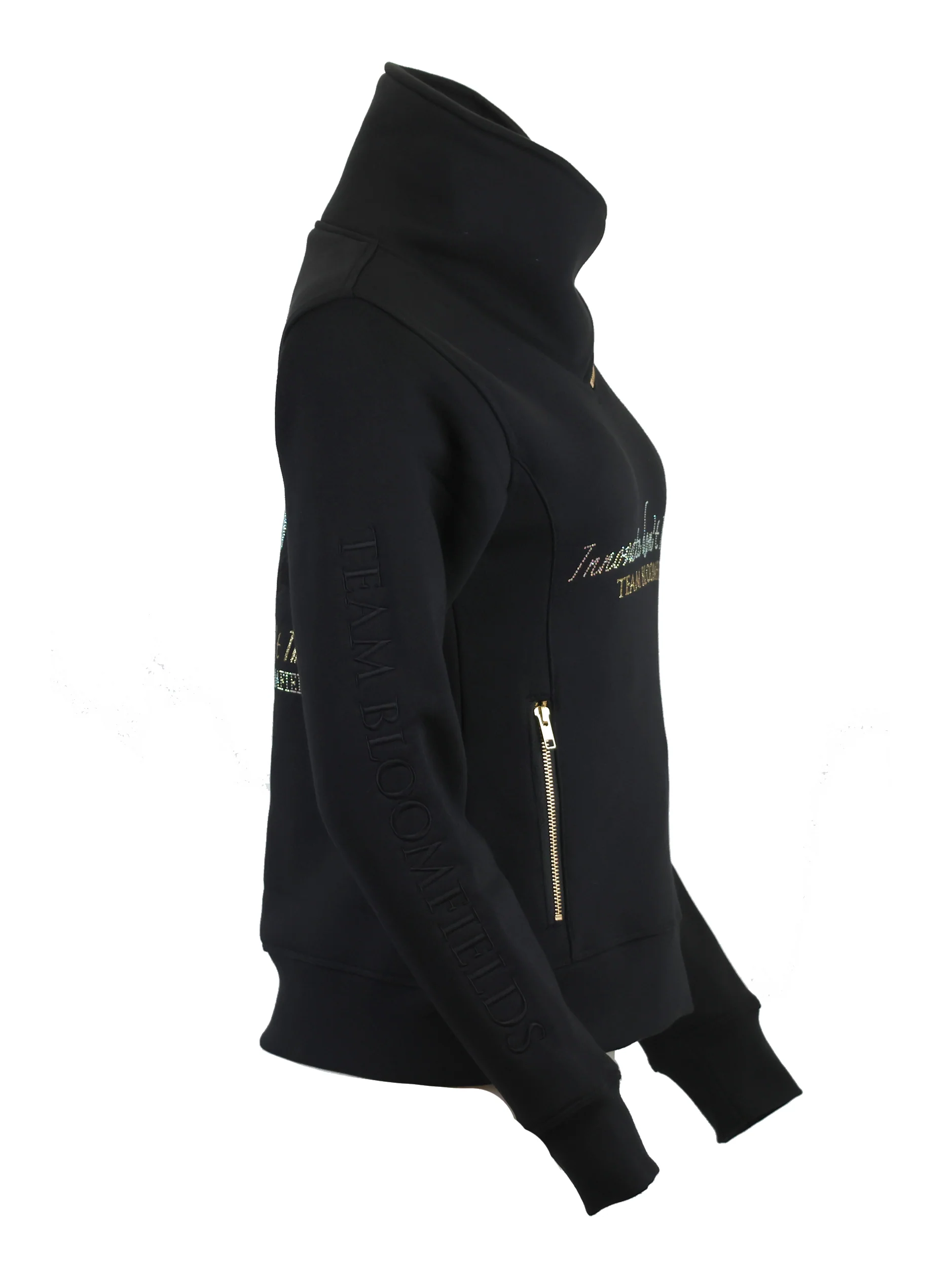De Eleanor Black Quarter Zip Top van Team Bloomfields is een stijlvolle pullover met een luxe afwerking en sportieve uitstraling. Je draagt hem tijdens de training, op stal of gewoon casual, zonder dat het “te basic” wordt.