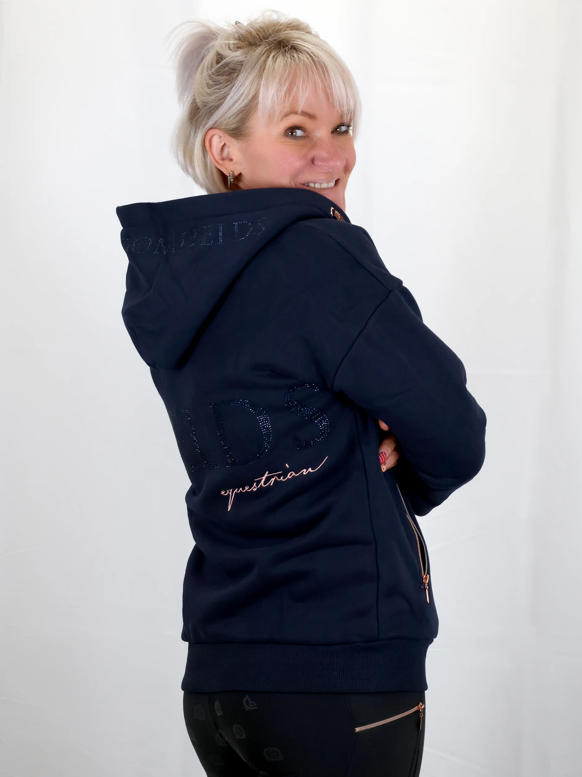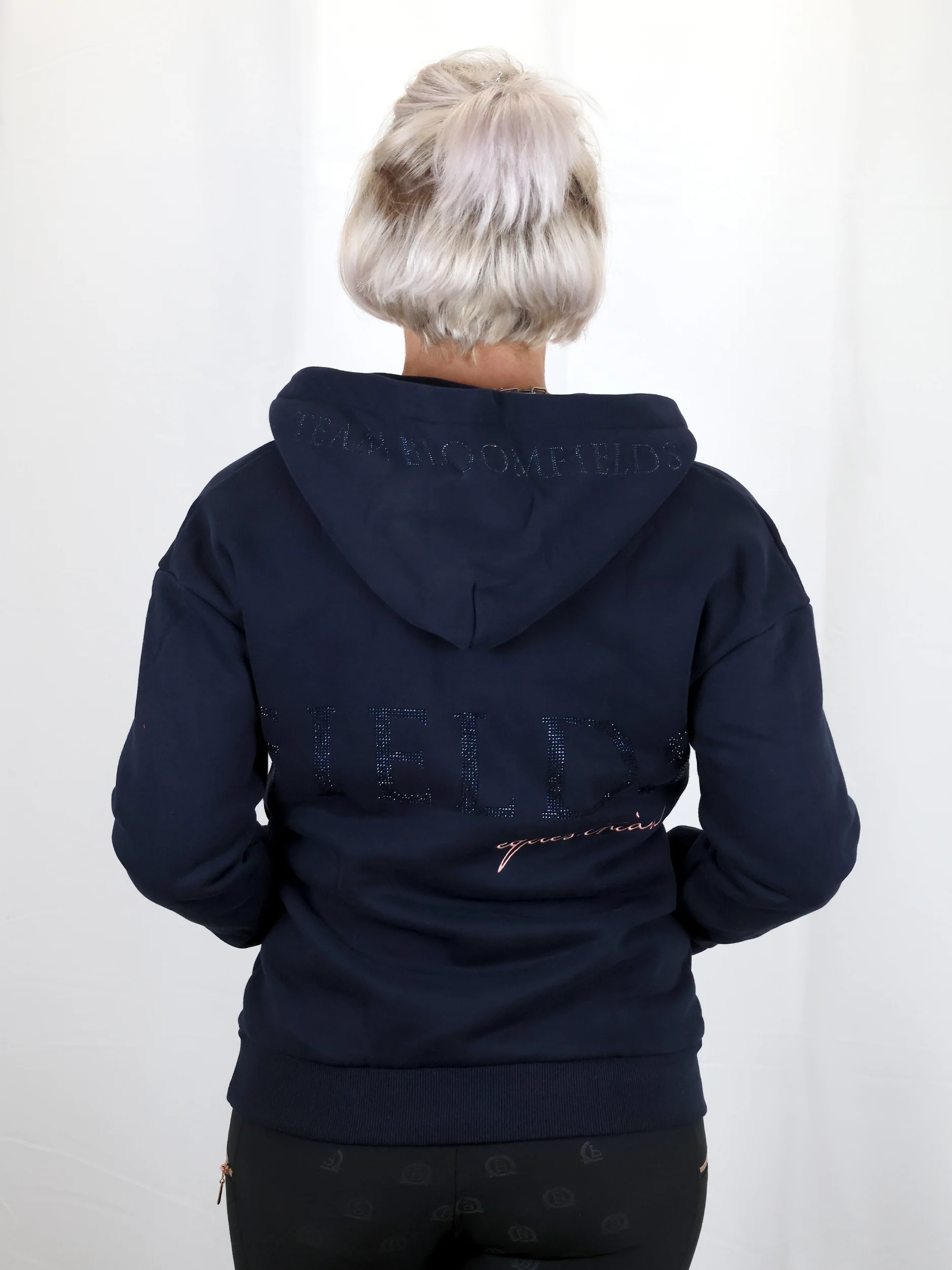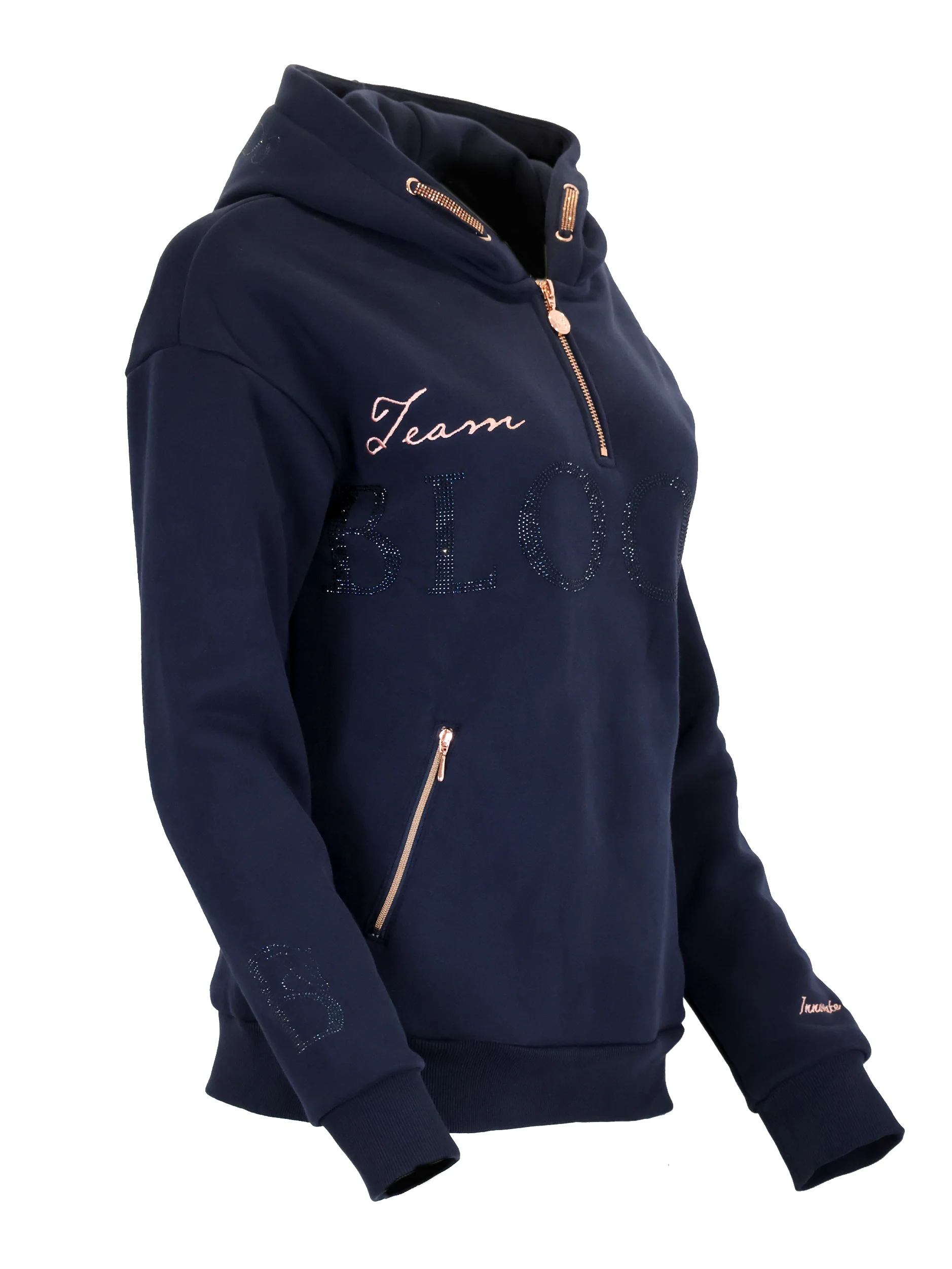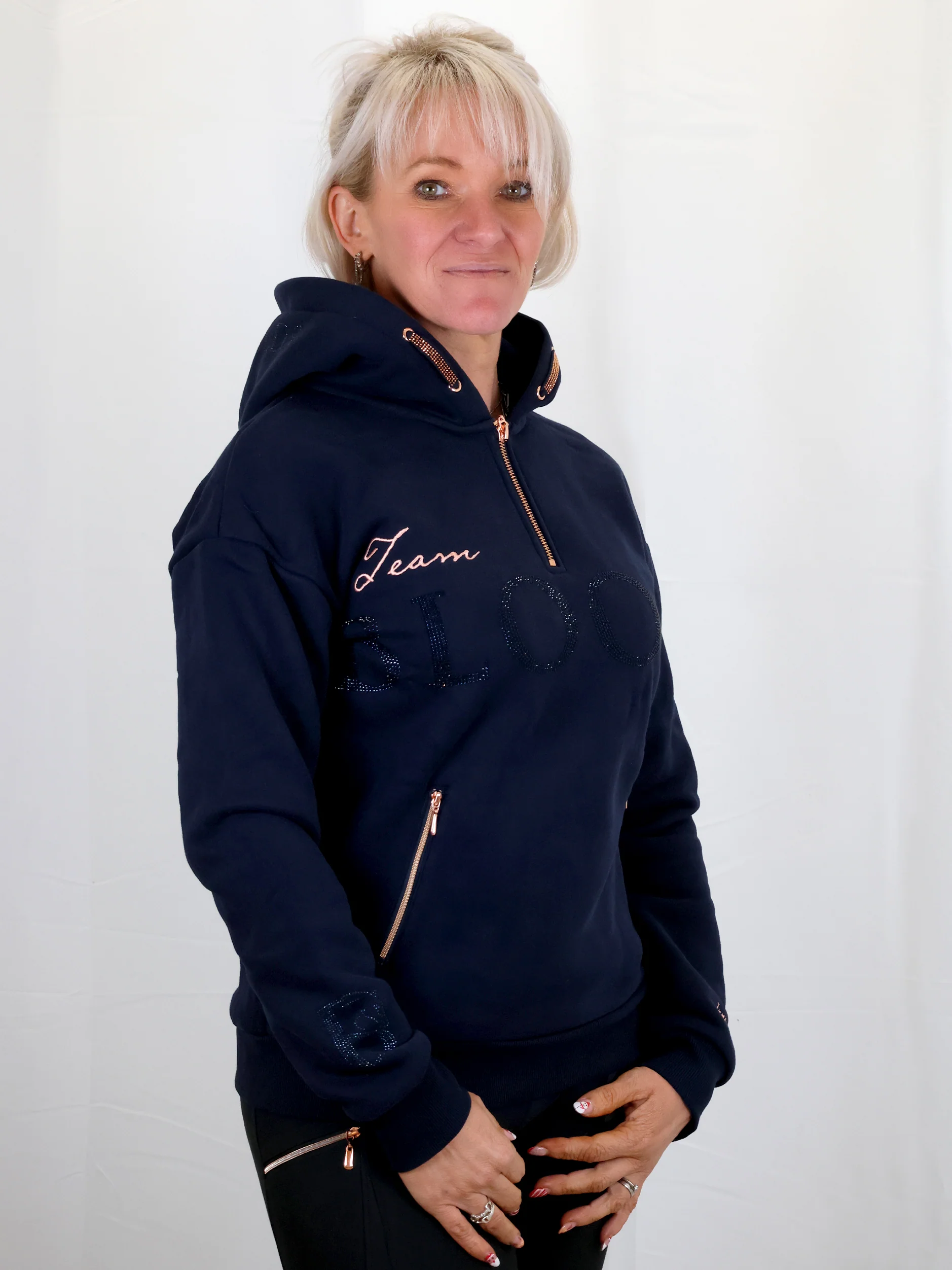 De Luna Navy Rhinestone Logo Hoodie van Team Bloomfields is een hoodie met uitstraling. Comfortabel, modern en afgewerkt met luxe details in roségoud. Ideaal voor op stal, onderweg of gewoon casual.