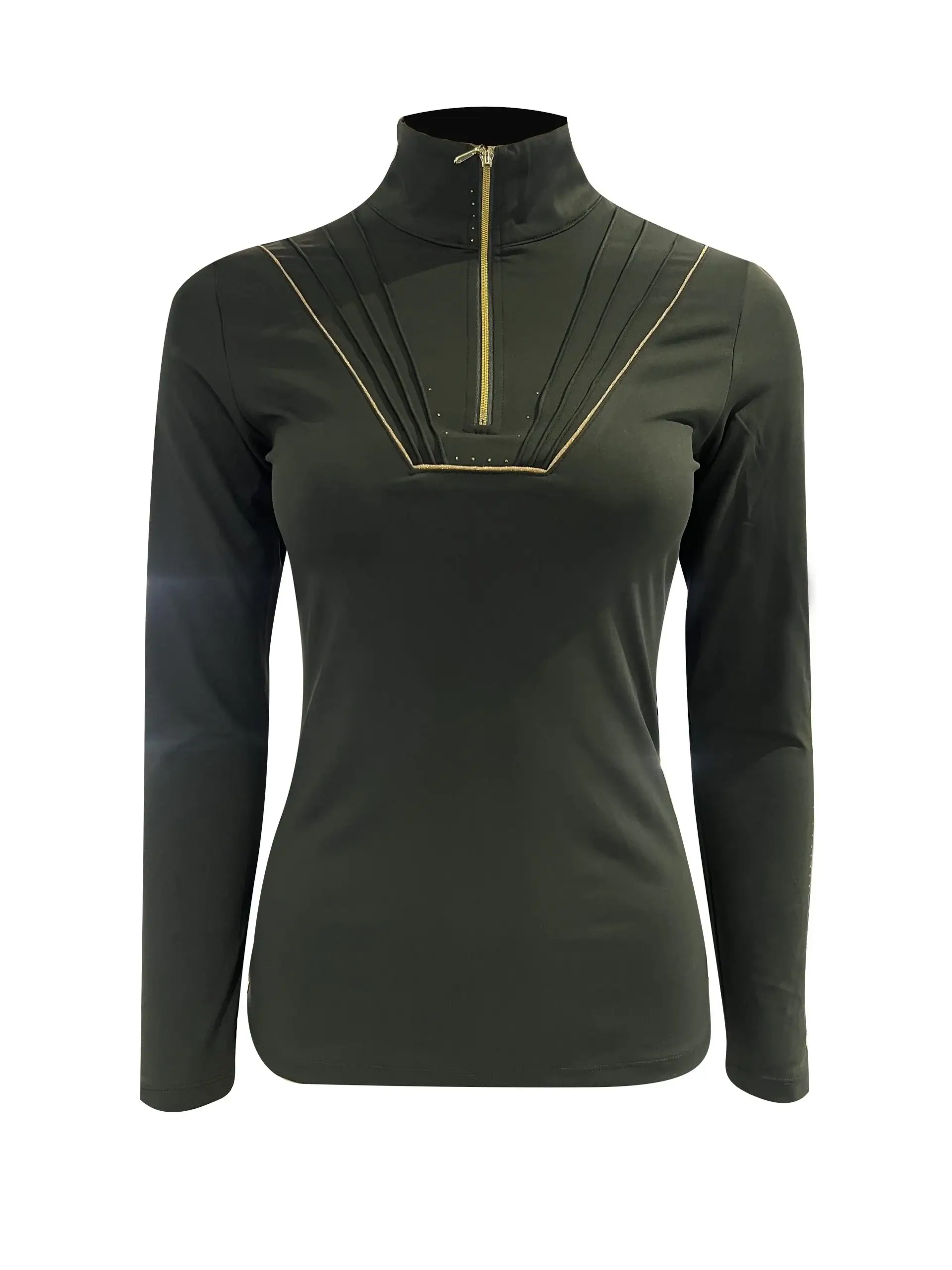 De Maya Olive Pleated Base Layer van Team Bloomfields is een stijlvolle base layer die comfort en uitstraling combineert en die perfect matcht met de Maya Pleated Olive legging. Een echte musthave wanneer je houdt van een nette, sportieve look met subtiele luxe details.
